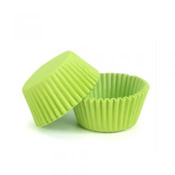 Гофрированная капсула из пергаментной бумаги круглой формы, зеленого цвета для упаковки кондитерских изделий, диаметр дна 30 мм, высота бортика 17,5 мм. Плотность бумаги 55 г/м2.