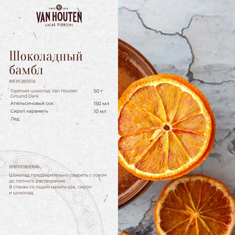 Van Houten Ground Dark Chocolate - это неконшированный шоколад необычной тонкой текстуры ("эффект мелко натертого/измельченного шоколада") позволяет создавать замечательные шоколадные напитки, шейки и коктейли с ярким и насыщенным вкусом.
